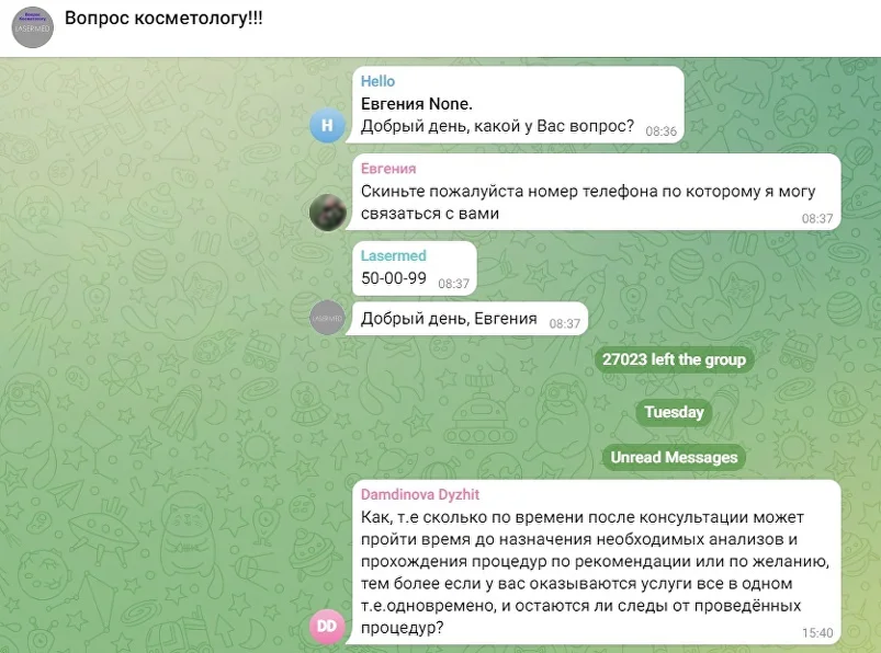 4) В схему автоворонки добавили приглашение в закрытый чат с косметологами - в сфере косметологии такой чат оказался отличным решением. Попадая в чат, девушки задавали свои вопросы по выбору процедур или молча читали ответы на вопросы других. В обоих случаях их доверие к врачу и осведомленность о спектре услуг клиники росли.
